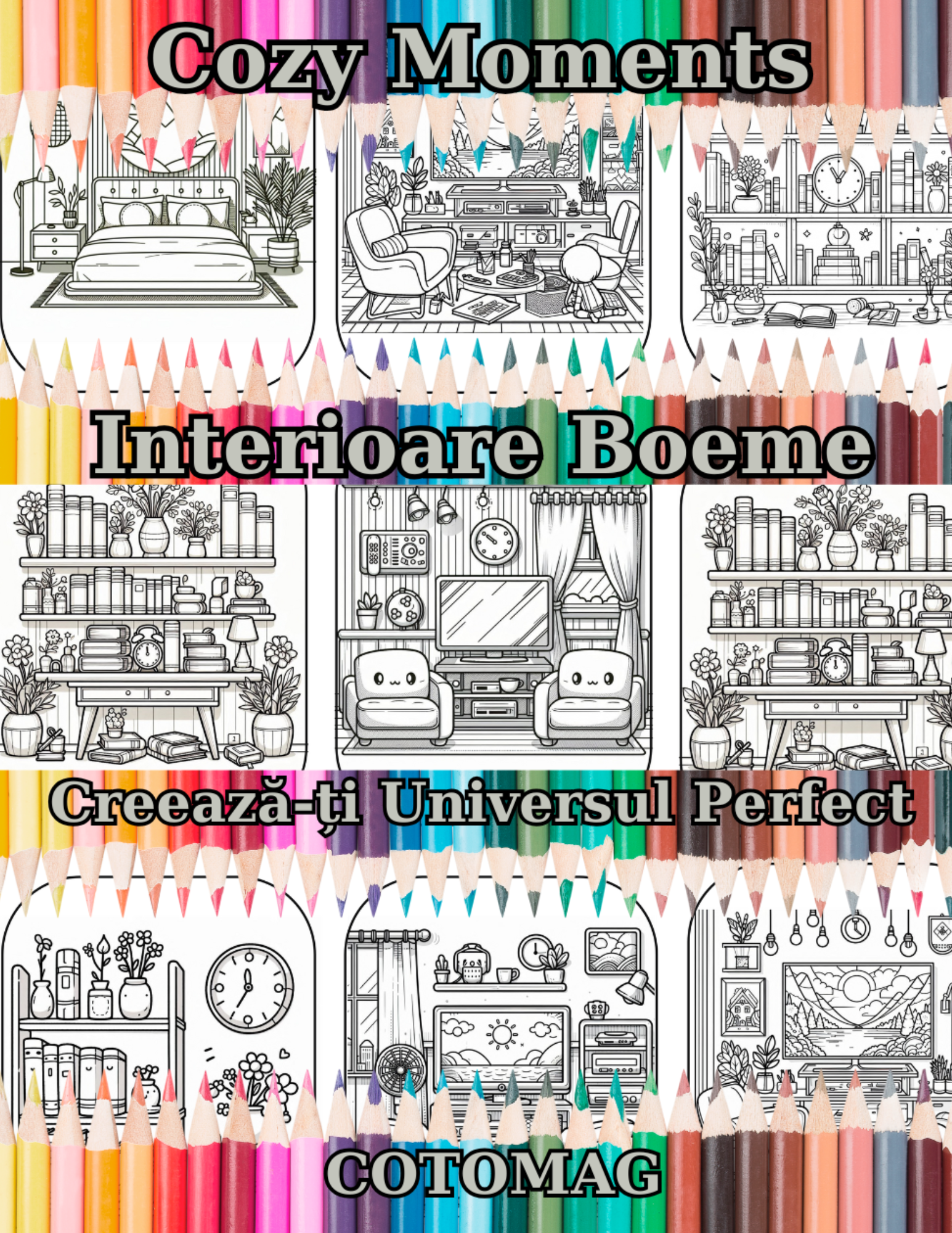 Carte de Colorat Cozy Moments - Interioare Boeme: Creează-ti Universul Perfect, Pentru Adulti si Copii