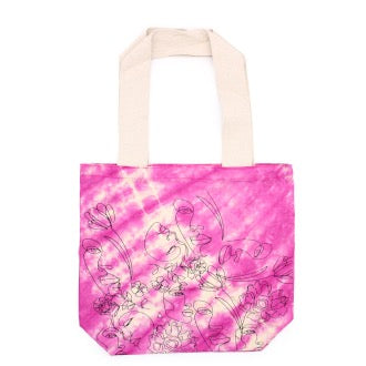 Geantă din bumbac Tie-Dye cu model Pretty Face,într-o nuanță frumoasă de magenta și cu mâner natural.